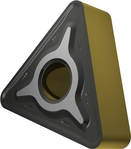 Doppelseitige negative Drehwendeschneidplatte · Triangular mit Innenkreisdurchmesser von 9.525mm · 4.76mm Dick · 1.2mm Radius · Indexgenauigkeit nach ISO-Toleranzklasse-M · Spanbrecher RM mit verrundeter Schneidkante · im Substrat T9415 · MT-CVD beschichtet WC-Co Substrat im ISO-Bereich P05 -P30 · zum medium bis schruppen bearbeiten von Stählen