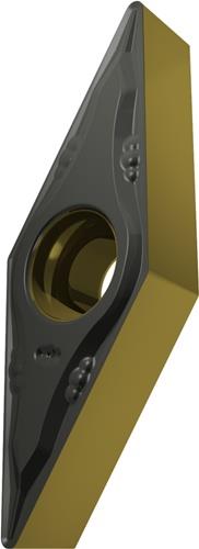 Einseitige positive Drehwendeschneidplatte · 35° Rhombisch mit 5° Freiwinkel · Innenkreisdurchmesser von 6.35mm · 3.18mm Dick · 0.4mm Radius · Indexgenauigkeit nach ISO-Toleranzklasse-M · Spanbrecher FM mit verrundeter Schneidkante · im Substrat T9415 · MT-CVD beschichtet WC-Co Substrat im ISO-Bereich P05 -P30 · zum schlichten bis medium bearbeiten von Stählen