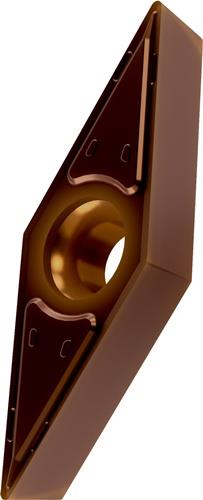 Einseitige positive Drehwendeschneidplatte · 35° Rhombisch mit 5° Freiwinkel · Innenkreisdurchmesser von 9.525mm · 4.76mm Dick · 0.4mm Radius · Indexgenauigkeit nach ISO-Toleranzklasse-M · Spanbrecher FF2 mit verrundeter Schneidkante · im Substrat T8430 · PVD beschichtet WC-Co Feinkornsubstrat im ISO-Bereich P20 -P40 · zum schlichten bis medium bearbeiten von Stählen