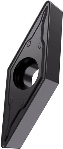 Einseitige positive Drehwendeschneidplatte · 35° Rhombisch mit 5° Freiwinkel · Innenkreisdurchmesser von 9.525mm · 4.76mm Dick · 0.8mm Radius · Indexgenauigkeit nach ISO-Toleranzklasse-M · Spanbrecher FM2 mit verrundeter Schneidkante · im Substrat T6310 · PVD beschichtet WC-Co Feinstkornsubstrat in den ISO-Bereichen P01 -P15 und K05 -K20 · zum schlichten bis medium bearbeiten von Stählen und Gusseisen