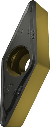 Einseitige positive Drehwendeschneidplatte · 35° Rhombisch mit 5° Freiwinkel · Innenkreisdurchmesser von 9.525mm · 4.76mm Dick · 1.2mm Radius · Indexgenauigkeit nach ISO-Toleranzklasse-M · Spanbrecher FM mit verrundeter Schneidkante · im Substrat T9415 · MT-CVD beschichtet WC-Co Substrat im ISO-Bereich P05 -P30 · zum schlichten bis medium bearbeiten von Stählen