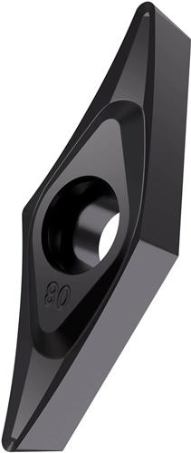 Einseitige positive Drehwendeschneidplatte · 35° Rhombisch mit 7° Freiwinkel · Innenkreisdurchmesser von 3.97mm · 2.38mm Dick · 0.4mm Radius · Indexgenauigkeit nach ISO-Toleranzklasse-G · Spanbrecher SF3 mit verrundeter Schneidkante · im Substrat T6310 · PVD beschichtet WC-Co Feinstkornsubstrat in den ISO-Bereichen M01 -M15/N05 -N20 und S01 -S15 · zum schlichten bis medium bearbeiten von nichtrostenden Stählen · Nichteisenmetallen und Superlegierungen