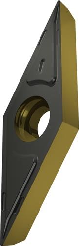Einseitige positive Drehwendeschneidplatte · 35° Rhombisch mit 7° Freiwinkel · Innenkreisdurchmesser von 7.94mm · 3.18mm Dick · 0.2mm Radius · Indexgenauigkeit nach ISO-Toleranzklasse-G · Spanbrecher FF2 mit verrundeter Schneidkante · im Substrat T9415 · MT-CVD beschichtet WC-Co Substrat im ISO-Bereich P05 -P30 · zum schlichten bis medium bearbeiten von Stählen