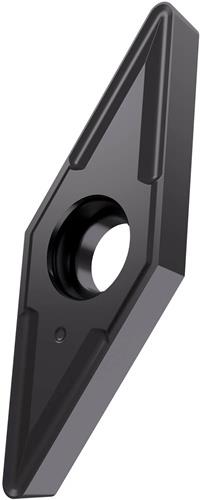 Einseitige positive Drehwendeschneidplatte · 35° Rhombisch mit 7° Freiwinkel · Innenkreisdurchmesser von 7.94mm · 3.18mm Dick · 0.4mm Radius · Indexgenauigkeit nach ISO-Toleranzklasse-G · Spanbrecher NF2 mit verrundeter Schneidkante · im Substrat T6310 · PVD beschichtet WC-Co Feinstkornsubstrat in den ISO-Bereichen M01 -M15 und S01 -S15 · zum schlichten bis medium bearbeiten von nichtrostenden Stählen und Superlegierungen