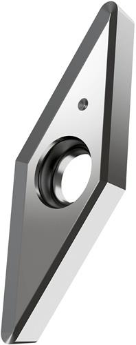 Einseitige positive Drehwendeschneidplatte · 35° Rhombisch mit 7° Freiwinkel · Innenkreisdurchmesser von 7.94mm · 3.18mm Dick · 0.4mm Radius · Indexgenauigkeit nach ISO-Toleranzklasse-G · Spanbrecher SF2 mit verrundeter Schneidkante · im Substrat HF7 · unbeschichtet WC-Co Feinkornsubstrat · zum schlichten bis medium bearbeiten