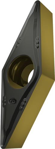 Einseitige positive Drehwendeschneidplatte · 35° Rhombisch mit 7° Freiwinkel · Innenkreisdurchmesser von 9.525mm · 4.76mm Dick · 0.8mm Radius · Indexgenauigkeit nach ISO-Toleranzklasse-M · Spanbrecher FM mit verrundeter Schneidkante · im Substrat T9415 · MT-CVD beschichtet WC-Co Substrat im ISO-Bereich P05 -P30 · zum schlichten bis medium bearbeiten von Stählen