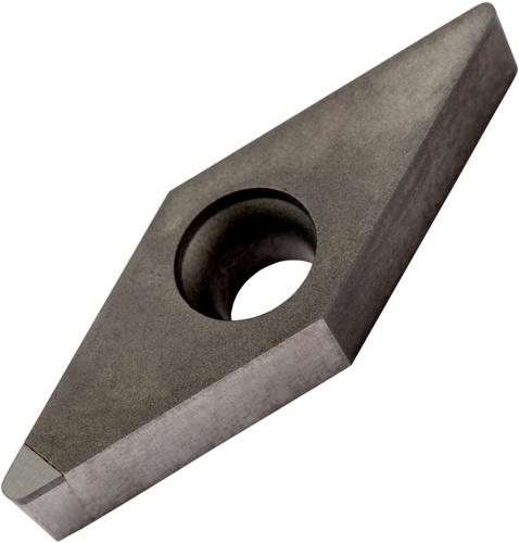 Wendeschneidplatte zum Drehen mit PKD Einsatz · 35° Rhomboid mit 7° Freiwinkel und Innenkreisdurchmesser 9.525mm · 4.76mm Dick · 0.4mm Schneidenradius · Wiederholgenauigkeit nach ISO-Toleranzklasse M · scharfer Schneidkante · im Substrat PD1 · unbeschichtetes PDK im ISO-Bereich N05-N25 · zur Hochvorschub Bearbeitung von Nichteisenmetallen