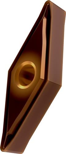 Doppelseitige negative Drehwendeschneidplatte · 35° Rhombisch mit Innenkreisdurchmesser von 9.525mm · 4.76mm Dick · 0.4mm Radius · Indexgenauigkeit nach ISO-Toleranzklasse-M · Spanbrecher NF mit verrundeter Schneidkante · im Substrat T8430 · PVD beschichtet WC-Co Feinkornsubstrat in den ISO-Bereichen P20 -P40 und M20 -M35 · zum schlichten bis medium bearbeiten von Stählen und nichtrostenden Stählen