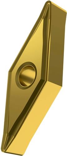 Doppelseitige negative Drehwendeschneidplatte · 35° Rhombisch mit Innenkreisdurchmesser von 9.525mm · 4.76mm Dick · 0.8mm Radius · Indexgenauigkeit nach ISO-Toleranzklasse-M · Spanbrecher NF mit verrundeter Schneidkante · im Substrat T8315 · PVD beschichtet WC-Co Feinkornsubstrat im ISO-Bereich M05 -M20 · zum schlichten bis medium bearbeiten von nichtrostenden Stählen