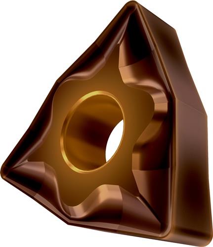 Doppelseitige negative Drehwendeschneidplatte · 80° Trigon mit Innenkreisdurchmesser von 9.525mm · 4.76mm Dick · 0.4mm Radius · Indexgenauigkeit nach ISO-Toleranzklasse-M · Spanbrecher NF mit verrundeter Schneidkante · im Substrat T8430 · PVD beschichtet WC-Co Feinkornsubstrat in den ISO-Bereichen P20 -P40 und M20 -M35 · zum schlichten bis medium bearbeiten von Stählen und nichtrostenden Stählen
