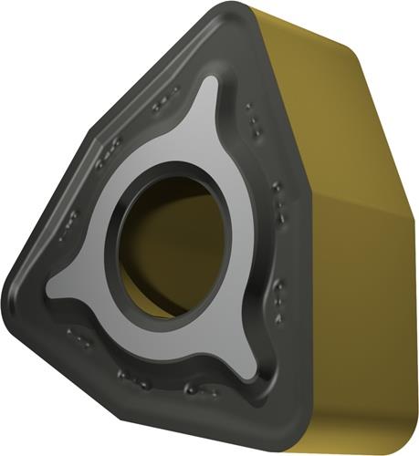 Doppelseitige negative Drehwendeschneidplatte · 80° Trigon mit Innenkreisdurchmesser von 9.525mm · 4.76mm Dick · 1.2mm Radius · Indexgenauigkeit nach ISO-Toleranzklasse-M · Spanbrecher RM mit verrundeter Schneidkante · im Substrat T9415 · MT-CVD beschichtet WC-Co Substrat im ISO-Bereich P05 -P30 · zum medium bis schruppen bearbeiten von Stählen