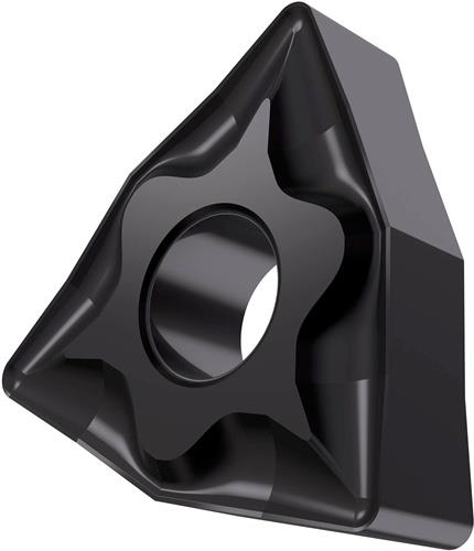 Doppelseitige negative Drehwendeschneidplatte · 80° Trigon mit Innenkreisdurchmesser von 12.7mm · 4.76mm Dick · 1.2mm Radius · Indexgenauigkeit nach ISO-Toleranzklasse-M · Spanbrecher NF mit verrundeter Schneidkante · im Substrat T6310 · PVD beschichtet WC-Co Feinstkornsubstrat in den ISO-Bereichen P01 -P15 und M01 -M15 · zum schlichten bis medium bearbeiten von Stählen und nichtrostenden Stählen