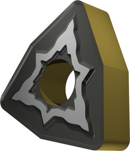 Doppelseitige negative Drehwendeschneidplatte · 80° Trigon mit Innenkreisdurchmesser von 12.7mm · 4.76mm Dick · 1.2mm Radius · Indexgenauigkeit nach ISO-Toleranzklasse-M · Spanbrecher NMR mit verrundeter Schneidkante · im Substrat T9415 · MT-CVD beschichtet WC-Co Substrat im ISO-Bereich P05 -P30 · zum schlichten bis schruppen bearbeiten von Stählen