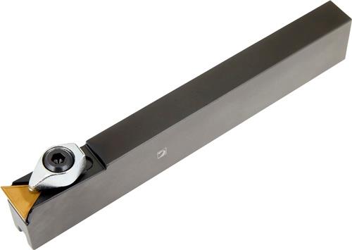 Dreh-Trägerwerkzeug von oben geklemmt zum spannen von Triangular positive Wendeschneidplatten mit einem Innenkreisdurchmesser von 9.525mm · 3.18mm Dick (ISO Bezeichnung TP.. 1603... ) · neutrale Ausführung zum 90° Längsdrehen mit Zylinderschaft · 25mm Werkzeughöhe x 14mm Breite x 150mm Länge für