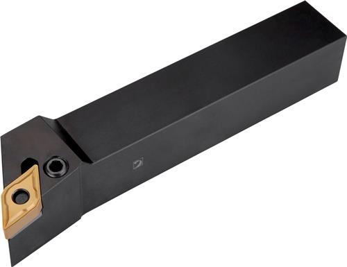 Dreh-Trägerwerkzeug mit Kniehebelklemmung zum spannen von 55° Rhombus negative Wendeschneidplatten mit einem Innenkreisdurchmesser von 12.7mm · 6.35mm Dick (ISO Bezeichnung DN.. 1506.. ) · rechte Ausführung für Sonderanwendungen · 32mm Werkzeughöhe x 25mm Breite x 170mm Länge für Kegeldrehen · Kopierdrehen in einer und mehreren Richtungen und Längsdrehen mit und ohne Schulter
