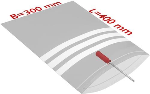 Druckverschlussbeutel m.Beschriftungsfeld Maße 300x400mm S.50µ PE transparent - VPE: 1000