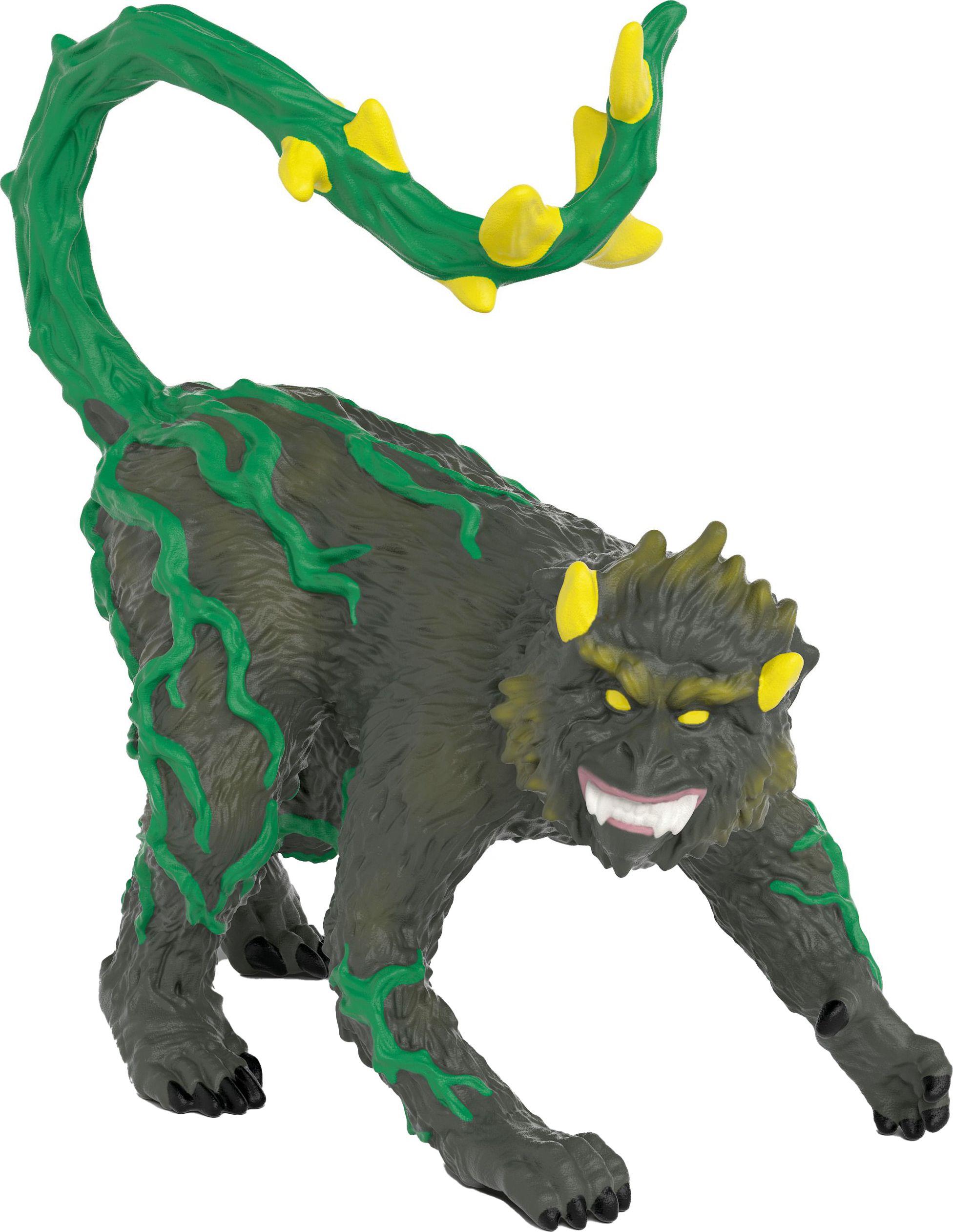 Der Dschungelschimpanse ist gefürchtet in ELDRADOR®. Zu Recht! Geschickt bewegt er sich durch das Dickicht des Urwalds und nutzt dabei seinen kräftigen, mit Stacheln besetzten Lianenschwanz. Lautlos schwingt er sich damit von Ast zu Ast und bleibt dabei in den Baumwipfeln verborgen. Ihm selbst entgeht jedoch nichts. Mit scharfen, gelben Augen beobachtet er jeden Dschungelbesucher. Wenn ihm jemand zu nahe kommt, dann stürzt er sich von oben auf den Eindringling und reißt sein gefährliches Maul auf. Also Vorsicht! Und immer nach oben schauen!