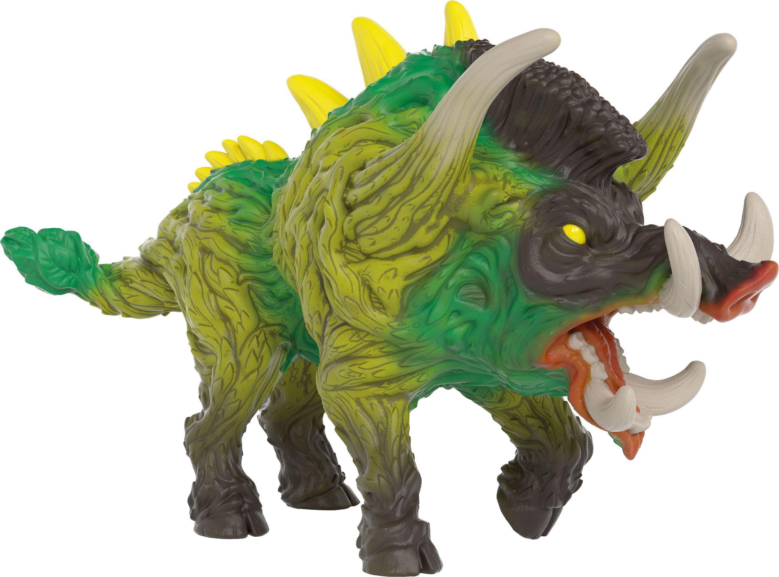 Mit diesem Bewohner von ELDRADOR® ist nicht gut Kirschen essen, das sieht man gleich. Das Dschungelwildschwein hebt den mächtigen Kopf und reißt sofort das riesige Maul auf. Einer Auseinandersetzung geht dieser Unruhestifter selten aus dem Weg. Warum auch? Mit seinen riesigen, gebogenen Zähnen kann sich der Keiler sehr gut verteidigen und tut das auch mit Leidenschaft. Wer ihm in die gelben Augen schaut, sieht sofort: Verhandeln zwecklos. Also nichts wie weg hier!