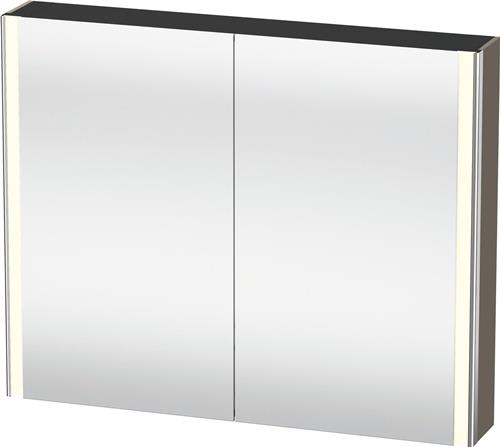 Duravit XSquare Spiegelschrank · Flanell Grau · Version: Sensor · Anzahl Türen: 2 · Türanschlag: Links · Rechts · Spiegelflächen: Türe(n) beidseitig · Rückwand · Anzahl Glasfachböden: 2 · Anzahl Holzfachböden: 1 · Material Korpus: Hochverdichtete MDF-Platte · 27 W · Betätigung Beleuchtung: Sensorschalter Unten · Rechts · Steckdose: Integriert · Anzahl Steckdosen: 1 · Typ Steckdose: E · 3500 K · Dimmfunktion: Integriert · Waschplatzbeleuchtung: Integriert · Leuchtmittel Lebensdauer: > 30000 h · Leuchtmittel austauschbar: Nein · Energieeffizienzklasse D