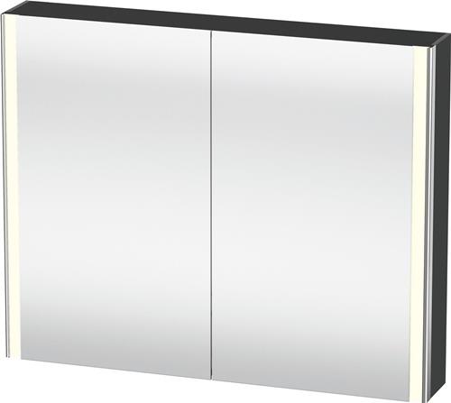 Duravit XSquare Spiegelschrank · Graphit · Version: Sensor · Anzahl Türen: 2 · Türanschlag: Links · Rechts · Spiegelflächen: Türe(n) beidseitig · Rückwand · Anzahl Glasfachböden: 2 · Anzahl Holzfachböden: 1 · Material Korpus: Hochverdichtete Dreischicht-Holzspanplatte · 27 W · Betätigung Beleuchtung: Sensorschalter Unten · Rechts · Steckdose: Integriert · Anzahl Steckdosen: 1 · Typ Steckdose: J · 3500 K · Dimmfunktion: Integriert · Waschplatzbeleuchtung: Integriert · Leuchtmittel Lebensdauer: > 30000 h · Leuchtmittel austauschbar: Nein · Energieeffizienzklasse D