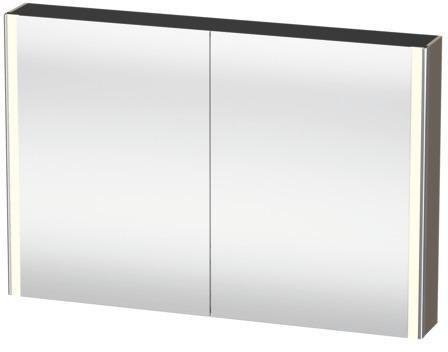Duravit XSquare Spiegelschrank · Flanell Grau · Version: Sensor · Anzahl Türen: 2 · Türanschlag: Links · Rechts · Spiegelflächen: Türe(n) beidseitig · Rückwand · Anzahl Glasfachböden: 2 · Anzahl Holzfachböden: 1 · Material Korpus: Hochverdichtete MDF-Platte · 27 W · Betätigung Beleuchtung: Sensorschalter Unten · Rechts · Steckdose: Integriert · Anzahl Steckdosen: 1 · Typ Steckdose: J · 3500 K · Dimmfunktion: Integriert · Waschplatzbeleuchtung: Integriert · Leuchtmittel Lebensdauer: > 30000 h · Leuchtmittel austauschbar: Nein · Energieeffizienzklasse D
