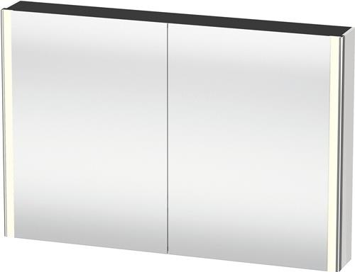 Duravit XSquare Spiegelschrank · Weiß · Version: Sensor · Anzahl Türen: 2 · Türanschlag: Links · Rechts · Spiegelflächen: Türe(n) beidseitig · Rückwand · Anzahl Glasfachböden: 2 · Anzahl Holzfachböden: 1 · Material Korpus: Hochverdichtete MDF-Platte · 27 W · Betätigung Beleuchtung: Sensorschalter Unten · Rechts · Steckdose: Integriert · Anzahl Steckdosen: 1 · Typ Steckdose: E · 3500 K · Dimmfunktion: Integriert · Waschplatzbeleuchtung: Integriert · Leuchtmittel Lebensdauer: > 30000 h · Leuchtmittel austauschbar: Nein · Energieeffizienzklasse D