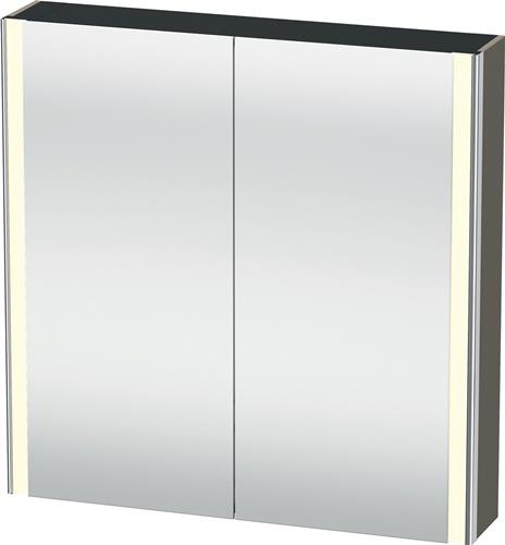 Duravit XSquare Spiegelschrank · Flanell Grau · Version: Sensor · Anzahl Türen: 2 · Türanschlag: Links · Rechts · Spiegelflächen: Türe(n) beidseitig · Rückwand · Anzahl Glasfachböden: 2 · Anzahl Holzfachböden: 1 · Material Korpus: Hochverdichtete MDF-Platte · 27 W · Betätigung Beleuchtung: Sensorschalter Unten · Rechts · Steckdose: Integriert · Anzahl Steckdosen: 1 · Typ Steckdose: E · 3500 K · Dimmfunktion: Integriert · Waschplatzbeleuchtung: Integriert · Leuchtmittel Lebensdauer: > 30000 h · Leuchtmittel austauschbar: Nein · Energieeffizienzklasse D