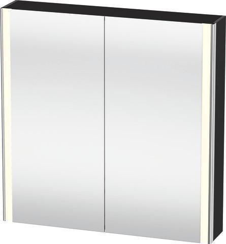 Duravit XSquare Spiegelschrank · Graphit · Version: Sensor · Anzahl Türen: 2 · Türanschlag: Links · Rechts · Spiegelflächen: Türe(n) beidseitig · Rückwand · Anzahl Glasfachböden: 2 · Anzahl Holzfachböden: 1 · Material Korpus: Hochverdichtete Dreischicht-Holzspanplatte · 27 W · Betätigung Beleuchtung: Sensorschalter Unten · Rechts · Steckdose: Integriert · Anzahl Steckdosen: 1 · Typ Steckdose: J · 3500 K · Dimmfunktion: Integriert · Waschplatzbeleuchtung: Integriert · Leuchtmittel Lebensdauer: > 30000 h · Leuchtmittel austauschbar: Nein · Energieeffizienzklasse D