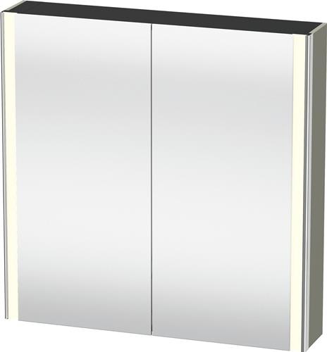 Duravit XSquare Spiegelschrank · Stein Grau · Version: Sensor · Anzahl Türen: 2 · Türanschlag: Links · Rechts · Spiegelflächen: Türe(n) beidseitig · Rückwand · Anzahl Glasfachböden: 2 · Anzahl Holzfachböden: 1 · Material Korpus: Hochverdichtete MDF-Platte · 27 W · Betätigung Beleuchtung: Sensorschalter Unten · Rechts · Steckdose: Integriert · Anzahl Steckdosen: 1 · Typ Steckdose: J · 3500 K · Dimmfunktion: Integriert · Waschplatzbeleuchtung: Integriert · Leuchtmittel Lebensdauer: > 30000 h · Leuchtmittel austauschbar: Nein · Energieeffizienzklasse D