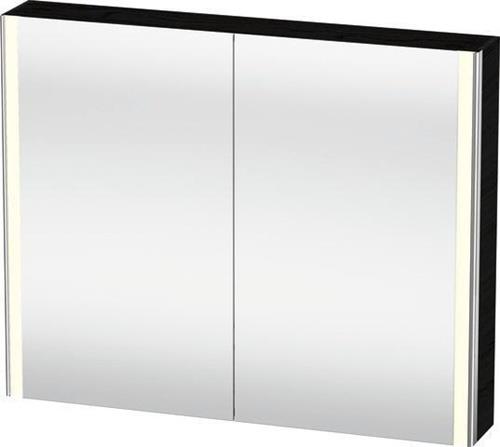 Duravit XSquare Spiegelschrank · Eiche Schwarz · Version: Sensor · Anzahl Türen: 2 · Türanschlag: Links · Rechts · Spiegelflächen: Türe(n) beidseitig · Rückwand · Anzahl Glasfachböden: 2 · Anzahl Holzfachböden: 1 · Material Korpus: Hochverdichtete Dreischicht-Holzspanplatte · 27 W · Betätigung Beleuchtung: Sensorschalter Unten · Rechts · Steckdose: Integriert · Anzahl Steckdosen: 1 · Typ Steckdose: J · 3500 K · Dimmfunktion: Integriert · Waschplatzbeleuchtung: Integriert · Leuchtmittel Lebensdauer: > 30000 h · Leuchtmittel austauschbar: Nein · Energieeffizienzklasse D