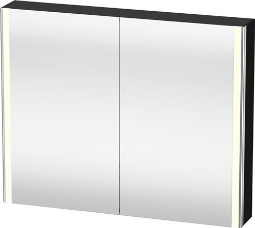 Duravit XSquare Spiegelschrank · Schwarz · Version: Sensor · Anzahl Türen: 2 · Türanschlag: Links · Rechts · Spiegelflächen: Türe(n) beidseitig · Rückwand · Anzahl Glasfachböden: 2 · Anzahl Holzfachböden: 1 · Material Korpus: Hochverdichtete MDF-Platte · 27 W · Betätigung Beleuchtung: Sensorschalter Unten · Rechts · Steckdose: Integriert · Anzahl Steckdosen: 1 · Typ Steckdose: E · 3500 K · Dimmfunktion: Integriert · Waschplatzbeleuchtung: Integriert · Leuchtmittel Lebensdauer: > 30000 h · Leuchtmittel austauschbar: Nein · Energieeffizienzklasse D