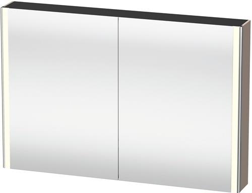 Duravit XSquare Spiegelschrank · Basalt · Version: Sensor · Anzahl Türen: 2 · Türanschlag: Links · Rechts · Spiegelflächen: Türe(n) beidseitig · Rückwand · Anzahl Glasfachböden: 2 · Anzahl Holzfachböden: 1 · Material Korpus: Hochverdichtete Dreischicht-Holzspanplatte · 27 W · Betätigung Beleuchtung: Sensorschalter Unten · Rechts · Steckdose: Integriert · Anzahl Steckdosen: 1 · Typ Steckdose: J · 3500 K · Dimmfunktion: Integriert · Waschplatzbeleuchtung: Integriert · Leuchtmittel Lebensdauer: > 30000 h · Leuchtmittel austauschbar: Nein · Energieeffizienzklasse D