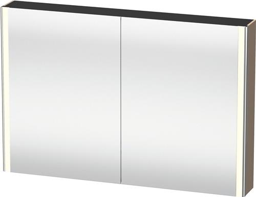 Duravit XSquare Spiegelschrank · Leinen · Version: Sensor · Anzahl Türen: 2 · Türanschlag: Links · Rechts · Spiegelflächen: Türe(n) beidseitig · Rückwand · Anzahl Glasfachböden: 2 · Anzahl Holzfachböden: 1 · Material Korpus: Hochverdichtete Dreischicht-Holzspanplatte · 27 W · Betätigung Beleuchtung: Sensorschalter Unten · Rechts · Steckdose: Integriert · Anzahl Steckdosen: 1 · Typ Steckdose: E · 3500 K · Dimmfunktion: Integriert · Waschplatzbeleuchtung: Integriert · Leuchtmittel Lebensdauer: > 30000 h · Leuchtmittel austauschbar: Nein · Energieeffizienzklasse D
