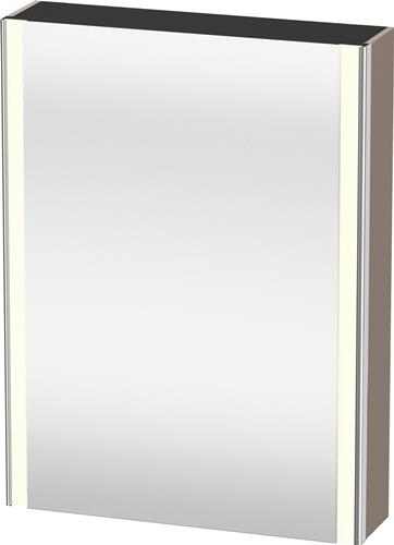 Duravit XSquare Spiegelschrank · Basalt · Version: Sensor · Anzahl Türen: 1 · Türanschlag: Links · Spiegelflächen: Türe(n) beidseitig · Rückwand · Anzahl Glasfachböden: 2 · Anzahl Holzfachböden: 1 · Material Korpus: Hochverdichtete Dreischicht-Holzspanplatte · 27 W · Betätigung Beleuchtung: Sensorschalter Unten · Rechts · Steckdose: Integriert · Anzahl Steckdosen: 1 · Typ Steckdose: E · 3500 K · Dimmfunktion: Integriert · Waschplatzbeleuchtung: Integriert · Leuchtmittel Lebensdauer: > 30000 h · Leuchtmittel austauschbar: Nein · Energieeffizienzklasse D