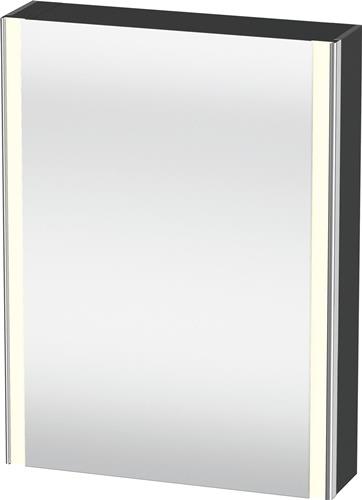 Duravit XSquare Spiegelschrank · Graphit · Version: Sensor · Anzahl Türen: 1 · Türanschlag: Rechts · Spiegelflächen: Türe(n) beidseitig · Rückwand · Anzahl Glasfachböden: 2 · Anzahl Holzfachböden: 1 · Material Korpus: Hochverdichtete Dreischicht-Holzspanplatte · 27 W · Betätigung Beleuchtung: Sensorschalter Unten · Rechts · Steckdose: Integriert · Anzahl Steckdosen: 1 · Typ Steckdose: J · 3500 K · Dimmfunktion: Integriert · Waschplatzbeleuchtung: Integriert · Leuchtmittel Lebensdauer: > 30000 h · Leuchtmittel austauschbar: Nein · Energieeffizienzklasse D