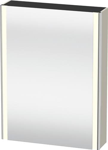 Duravit XSquare Spiegelschrank · Taupe · Version: Sensor · Anzahl Türen: 1 · Türanschlag: Links · Spiegelflächen: Türe(n) beidseitig · Rückwand · Anzahl Glasfachböden: 2 · Anzahl Holzfachböden: 1 · Material Korpus: Hochverdichtete Dreischicht-Holzspanplatte · 27 W · Betätigung Beleuchtung: Sensorschalter Unten · Rechts · Steckdose: Integriert · Anzahl Steckdosen: 1 · Typ Steckdose: J · 3500 K · Dimmfunktion: Integriert · Waschplatzbeleuchtung: Integriert · Leuchtmittel Lebensdauer: > 30000 h · Leuchtmittel austauschbar: Nein · Energieeffizienzklasse D