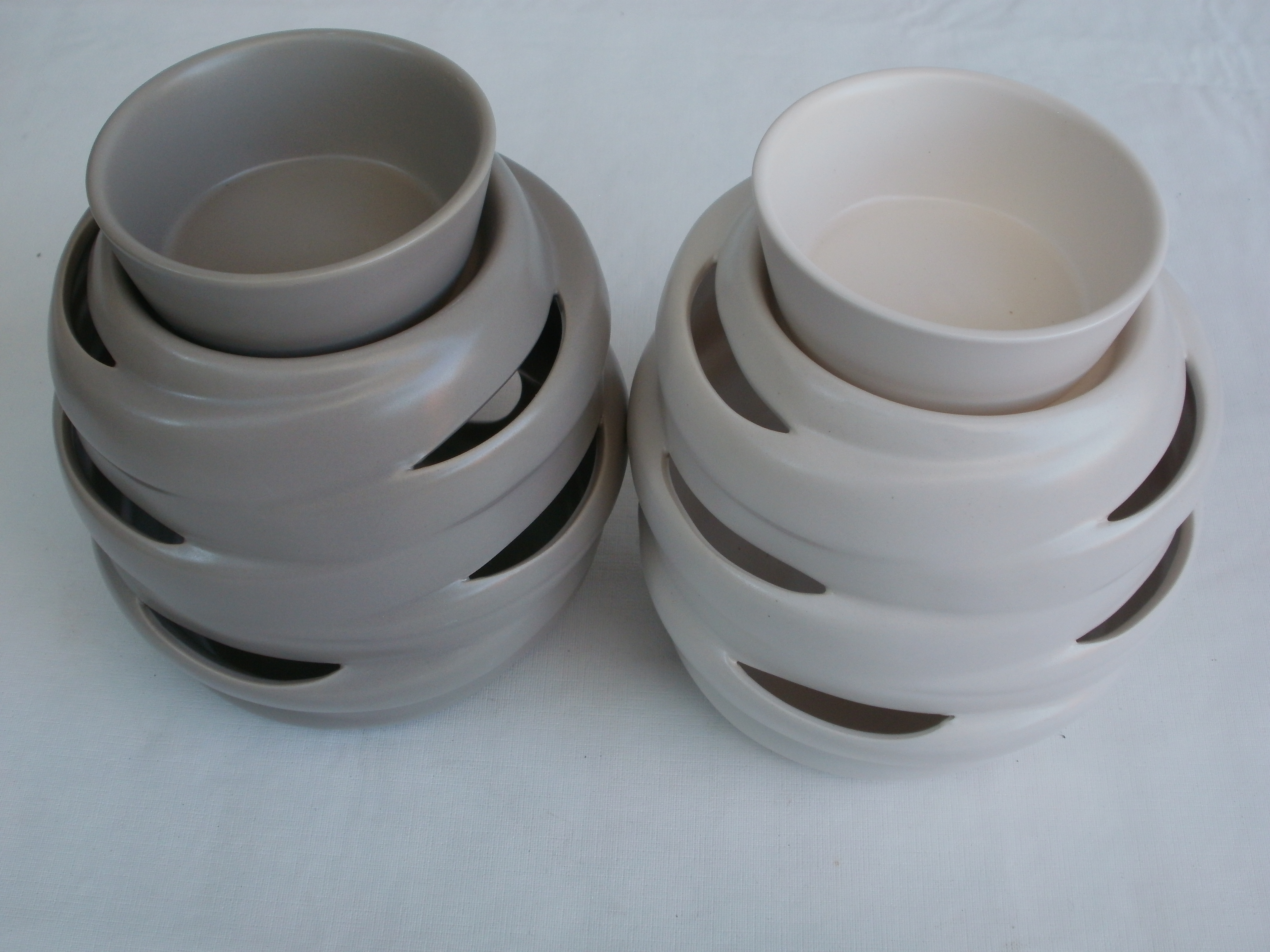 Diese wunderschöne Duftlampe in Weiß oder Taupe ist aus Keramik mit vielen aufwendigen Details gearbeitet. Sie hat eine Höhe von ca. 16 cm und einen Durchmesser von ca. 13 cm.