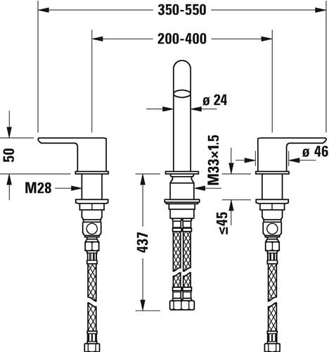 Duravit 3-Loch-Waschtischarmatur C.1 Ausldg 140mm o Zugst-Ablaufgarn. chrom