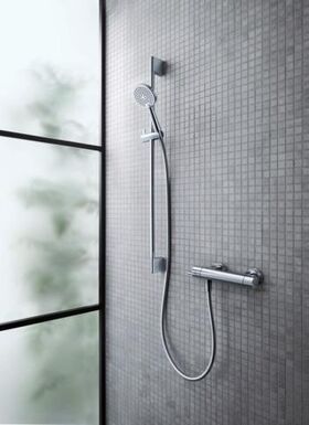 S-Anschlüsse · Stichmaß 150 mm ± 20 mm · Anschlussgröße DN 15 · Thermostatkartusche · Sicherheitssperre bei 38 °C · Rückflussverhinderer im Schlauchanschluss DN 15 · empfohlener Betriebsdruck 3-5 bar