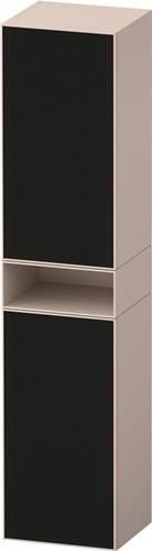 Duravit Zencha Hochschrank · 400x360x1760 mm · Wandhängend & Wandmontage · Türanschlag: Links · Farbe Front: Schwarz Linienstruktur n/a · Farbe Korpus: Taupe Supermatt · Anzahl Türen: 2 · Anzahl Holzfachböden: 4 · Tip-on Technik - ZE1353L63830000