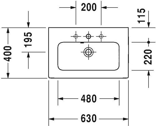 Duravit ME by Starck Waschtisch 630 mm Weiß Seidenmatt · Hahnlochbank · Anzahl Hahnlöcher pro Waschplatz: 2 · Überlauf - 2342633258