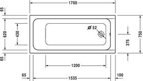 Duravit Rechteck-Whirlwanne D-CODE 120 l 170x75 we 1 RS Jet Project
