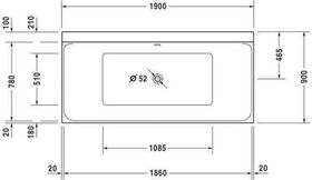 Duravit Rechteck-Whirlwanne P3 Comforts 250 l 1900x900 we 2 RS Combi-System P