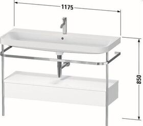 ohne Einrichtungssystem · bodenstehend · 1 Handtuchhalter · 1 Schubkasten · Möbelwaschtisch Happy D.2 Plus · mit Überlauf und Hahnlochbank · Unterseitige Acrylabdeckung unterhalb der Hahnlochbank · Push-Open Ventil mit keramischer Ventildeckhaube · Metallkonsole mit integriertem Höhenausgleich