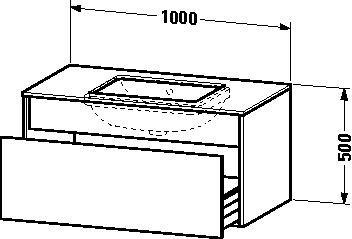 wandhängend · für Einbauwaschtisch von unten bonded · 1x Auszug · Konsolenplatte mit 1 Ausschnitt · mittig mit Schürze