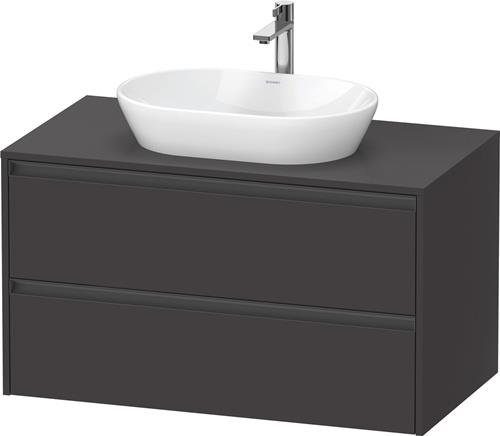 Duravit Ketho.2 Konsolenwaschtischunterbau wandhängend · 1000x550 mm · Farbe Front: Graphit Supermatt · Farbe Korpus: Graphit Supermatt · Farbe Griff: Anthrazit Matt · Anzahl Schubkasten: 2 · Anzahl Ausschnitte: 1 · Siphonausschnitt · Inkl. Konsolenplatte - K2489