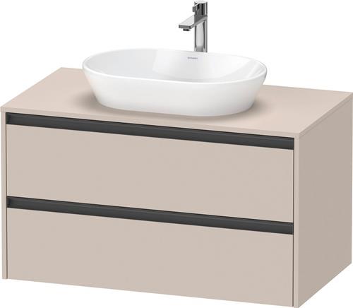 Duravit Ketho.2 Konsolenwaschtischunterbau wandhängend · 1000x550 mm · Farbe Front: Taupe Matt · Farbe Korpus: Taupe Matt · Farbe Griff: Anthrazit Matt · Anzahl Schubkasten: 2 · Anzahl Ausschnitte: 1 · Siphonausschnitt · Inkl. Konsolenplatte - K24896091910000