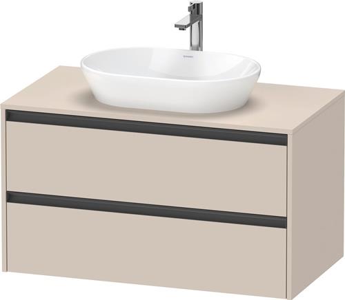 Duravit Ketho.2 Konsolenwaschtischunterbau wandhängend · 1000x550 mm · Farbe Front: Taupe Supermatt · Farbe Korpus: Taupe Supermatt · Farbe Griff: Anthrazit Matt · Anzahl Schubkasten: 2 · Anzahl Ausschnitte: 1 · Siphonausschnitt · Inkl. Konsolenplatte - K24896083