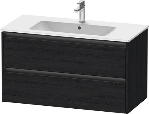 Duravit Ketho.2 Waschtischunterbau wandhängend · 1010x480 mm · Farbe Front: Eiche (Schwarz) Matt · Farbe Korpus: Eiche (Schwarz) Matt · Farbe Griff: Anthrazit Matt · Anzahl Schubkasten: 2 · Siphonausschnitt - K25264016160000