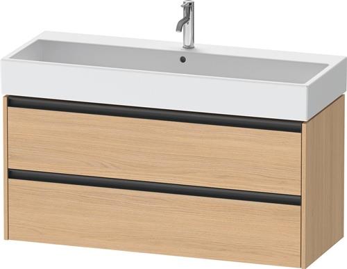 Duravit Ketho.2 Waschtischunterbau wandhängend · 1184x460 mm · Farbe Front: Natur Eiche Matt · Farbe Korpus: Natur Eiche Matt · Farbe Griff: Anthrazit Matt · Anzahl Schubkasten: 2 · Siphonausschnitt - K25279030300000